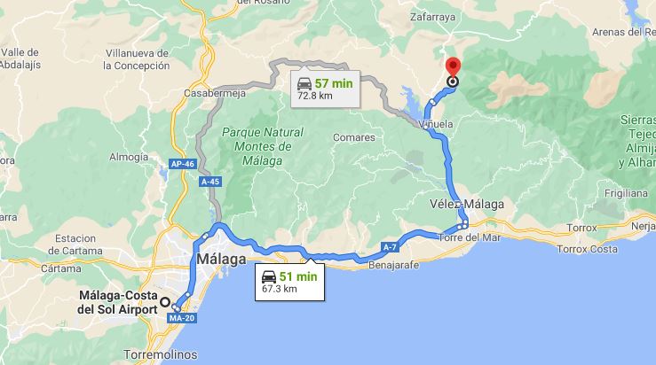 Just a 45 minute drive from Malaga airport, follow the E15 motorway along the coast and turn onto the 335 road when you reach Vélez-Malaga, follow the signs to the Spanish village of Alcaucin...